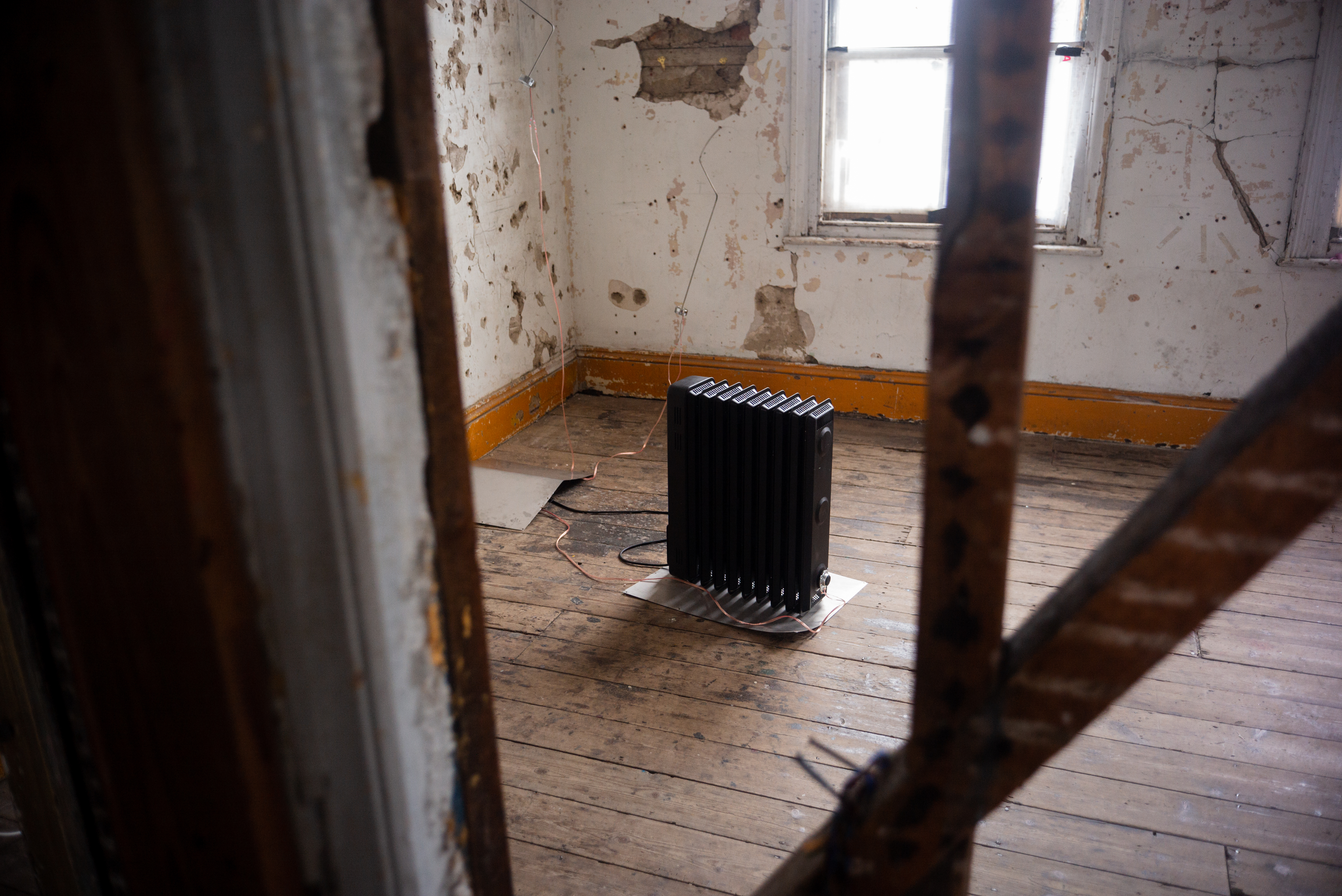 In a cold space, visitors gather around the warmth, tracing invisible lines of movement and shared bodily memory.